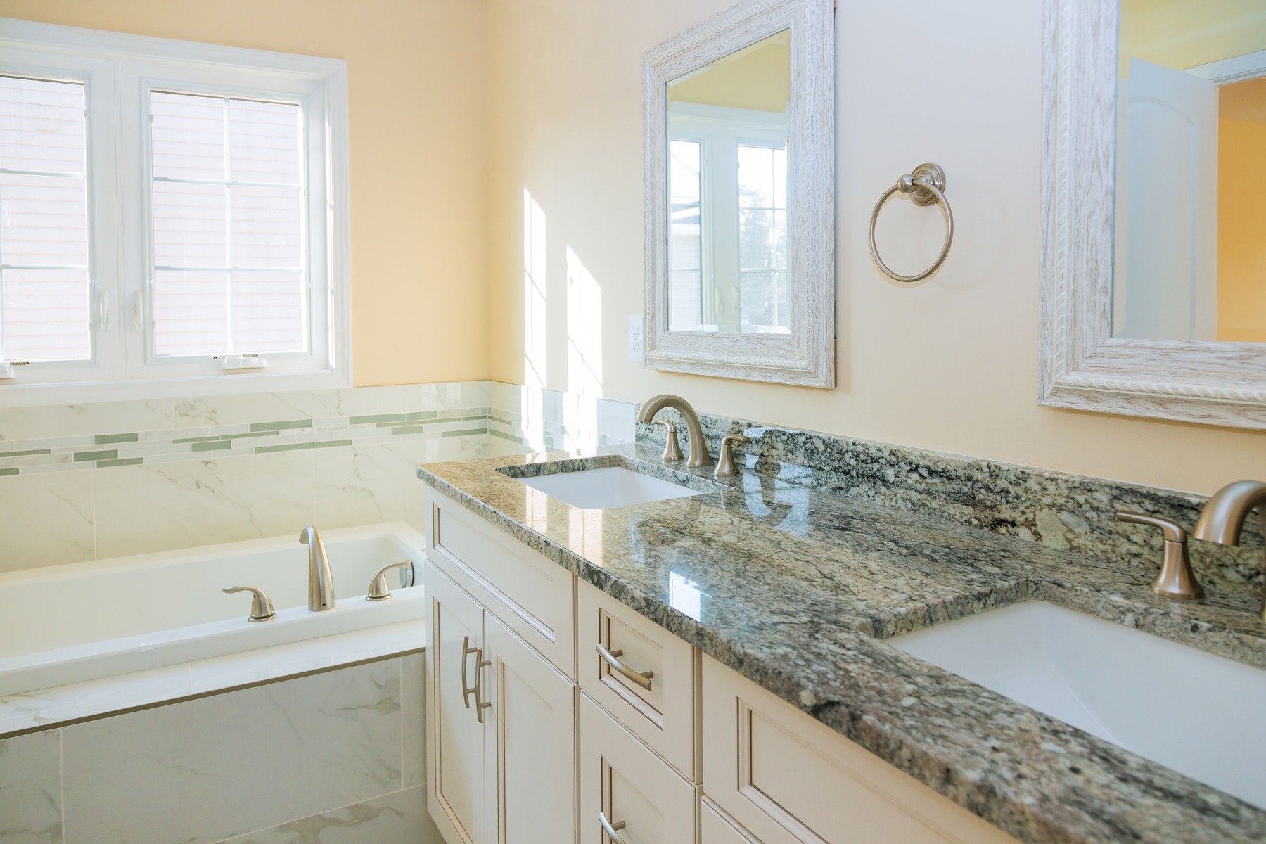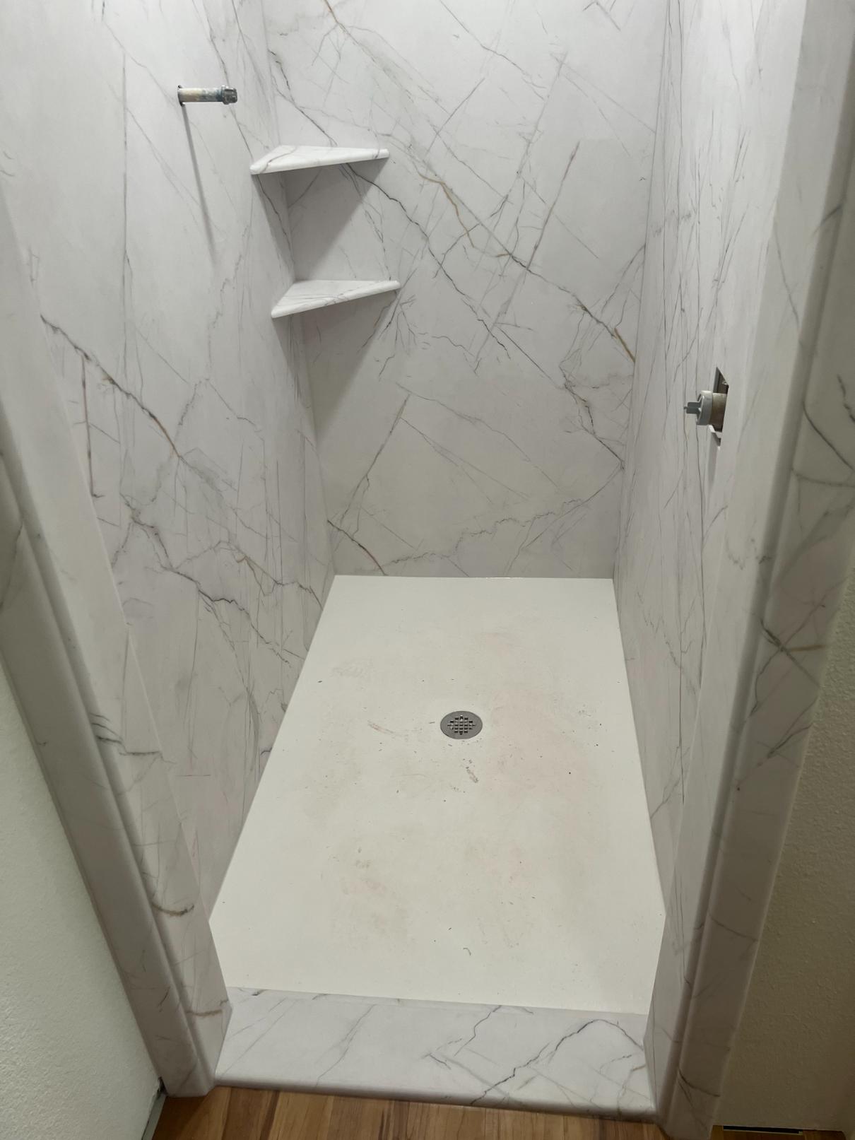 We use cultured marble and granite in bathrooms to provide a safe, non-slip surface that looks amazing. Per your request, we can also use real granite or quartz.